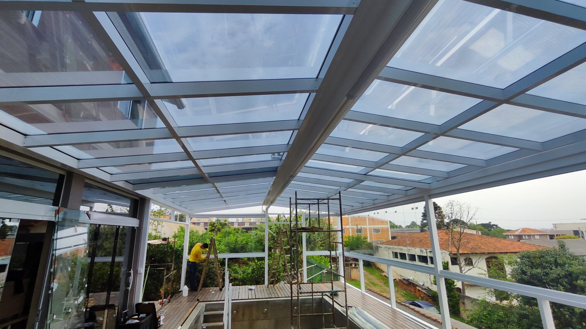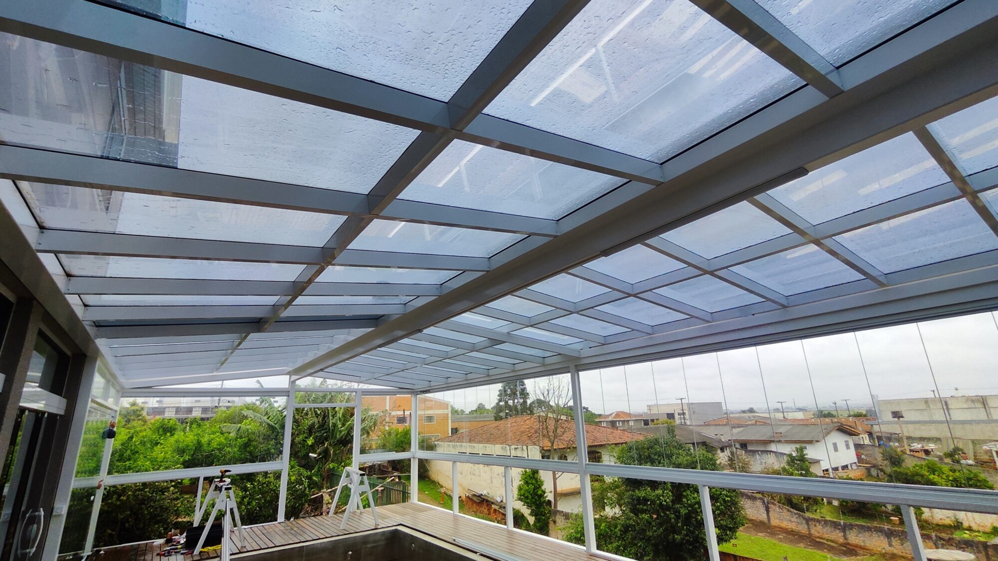 São montados totalmente com a estrutura em alumínio ou, com calhas de aço estrutural galvanizado no perímetro externo para oferecer melhor resistência e maior durabilidade e, com perfis em alumínio na estrutura central da cobertura para proporcionar a devida beleza estética.