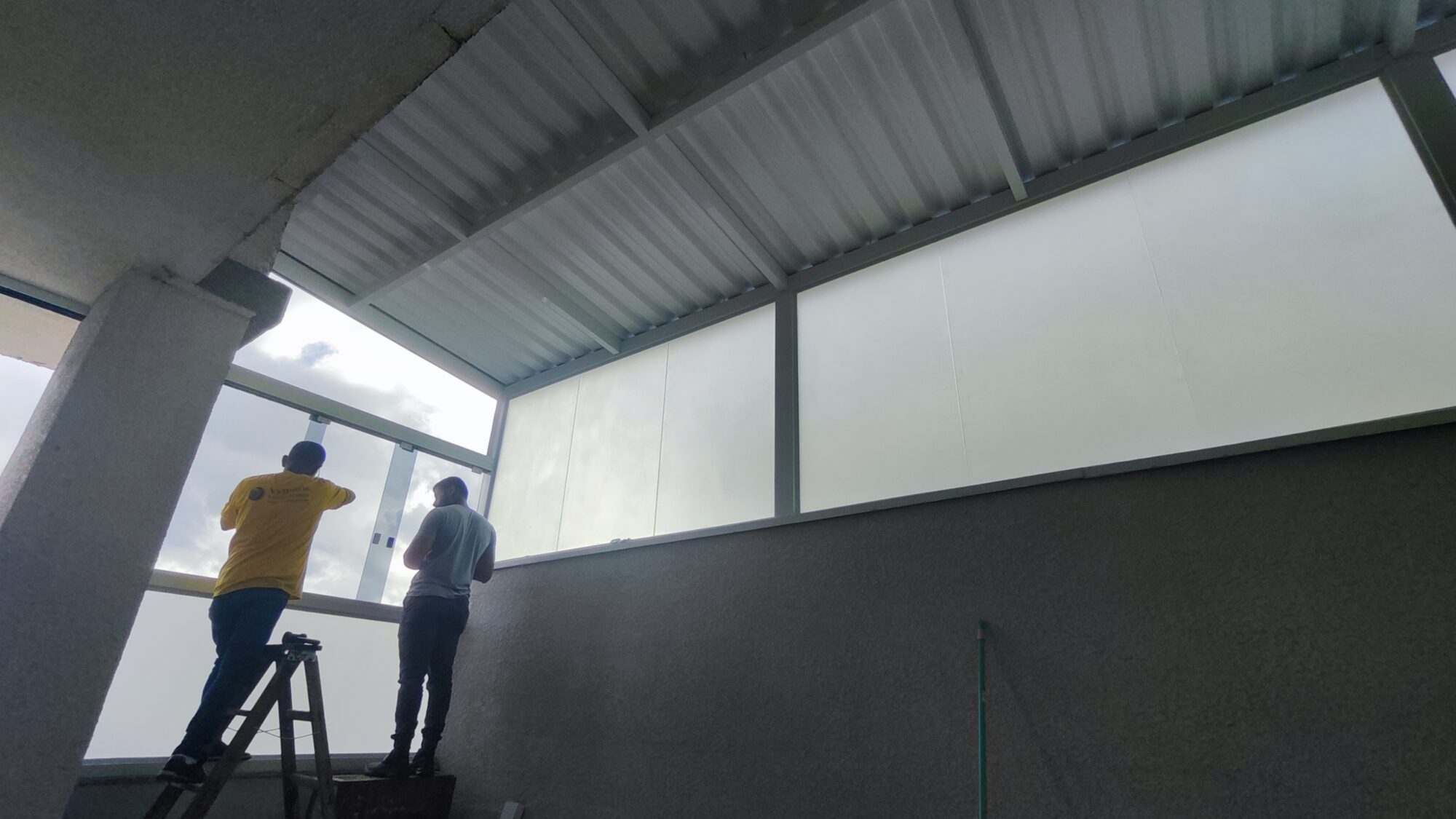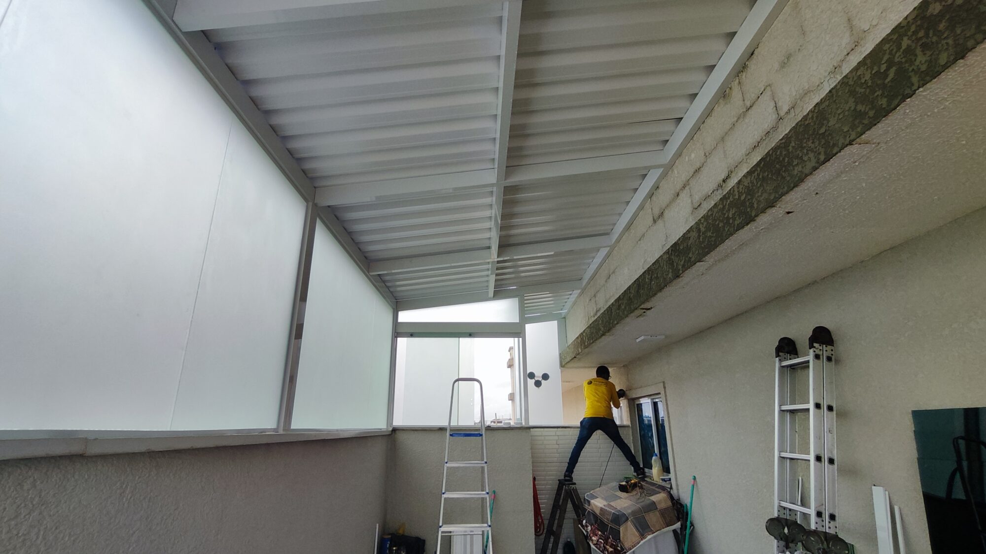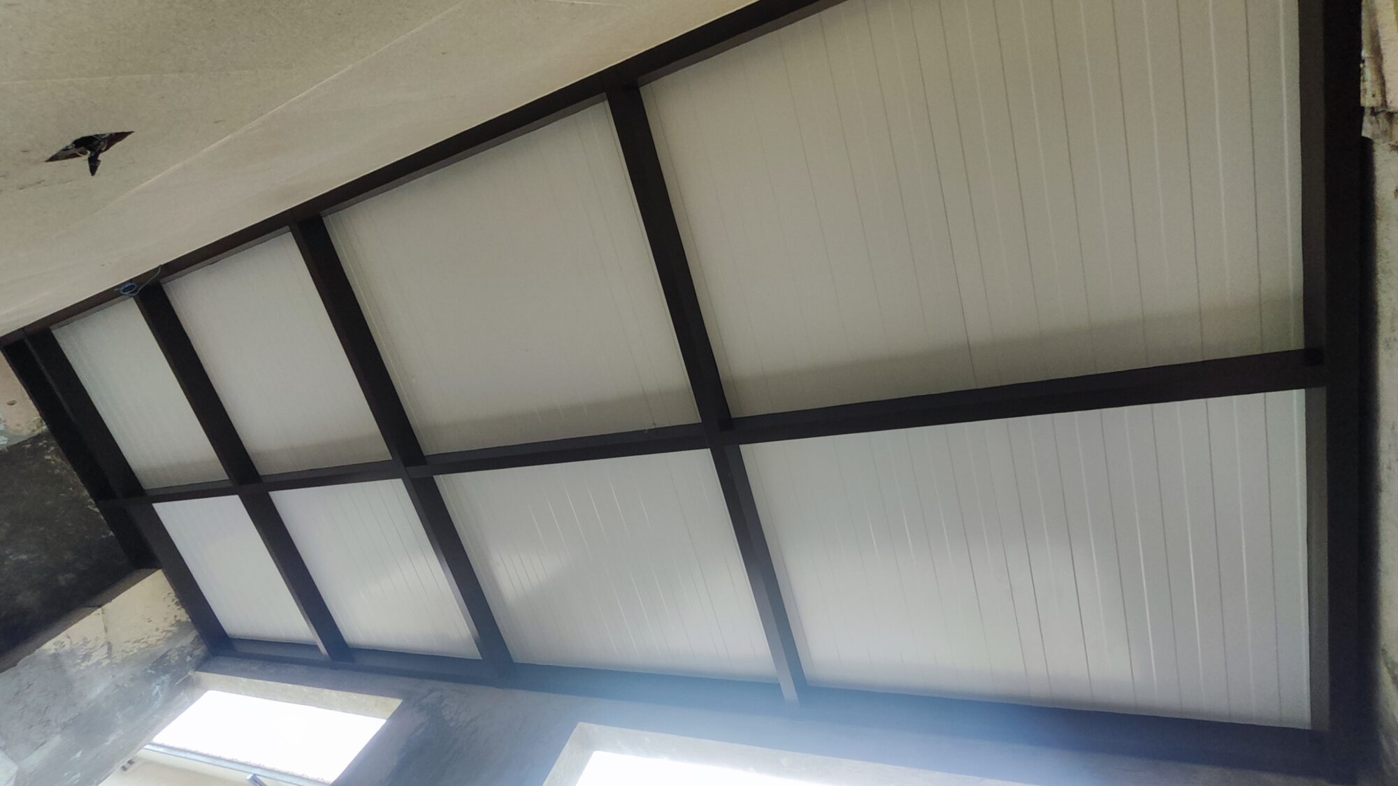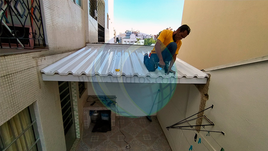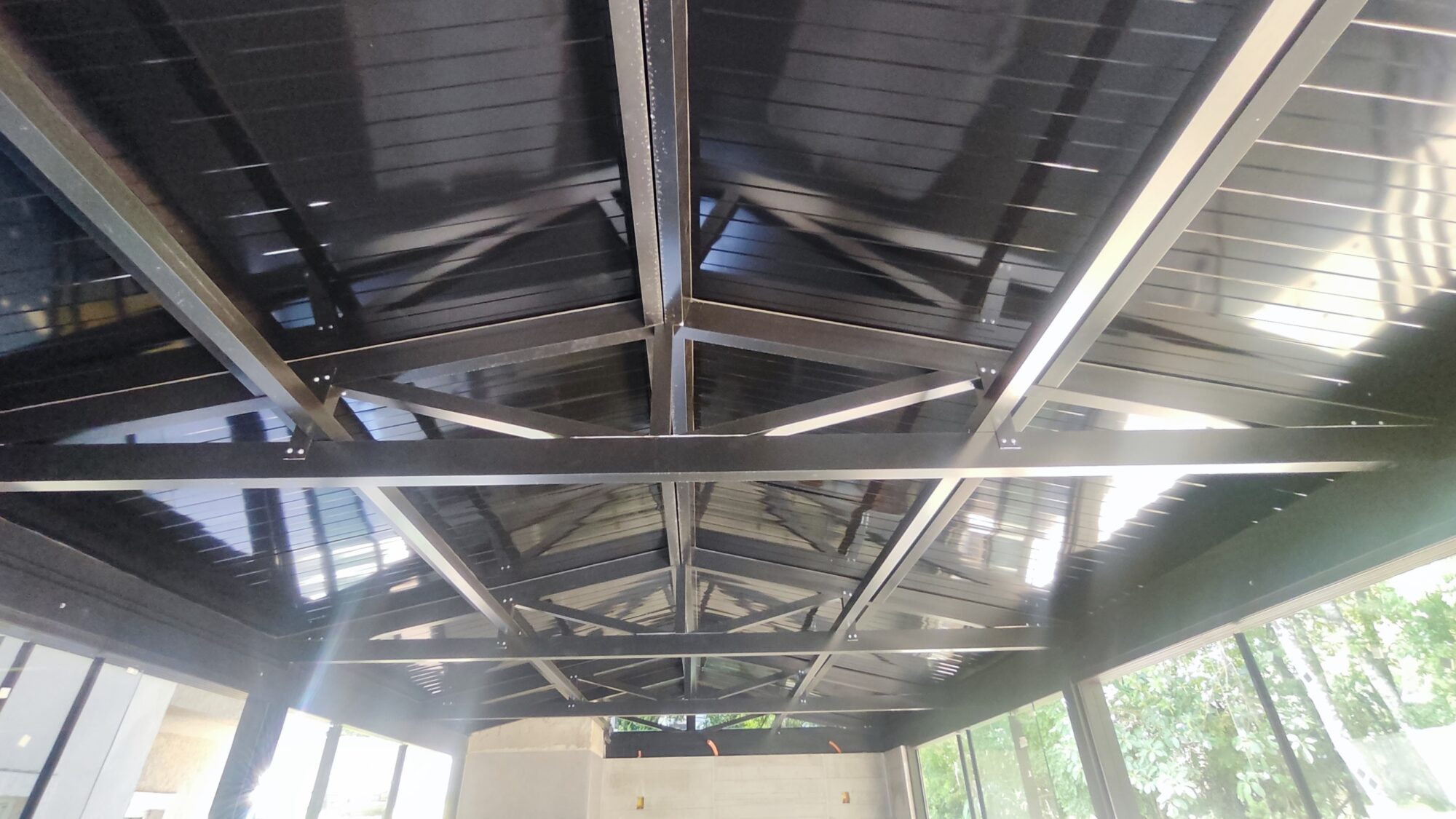 O formato da telha termoacústica é trapezoidal na sua face superior. Na face inferior pode ter o mesmo formato trapezoidal ou pode ser plano. Neste último caso recebe o nome de Telha Bandeja. A VVidros Engenharia sempre trabalha com pintura eletrostática em ambas faces para ficar com o mesmo acabemento e aparência que as estruturas compostas por perfis de alumínio.