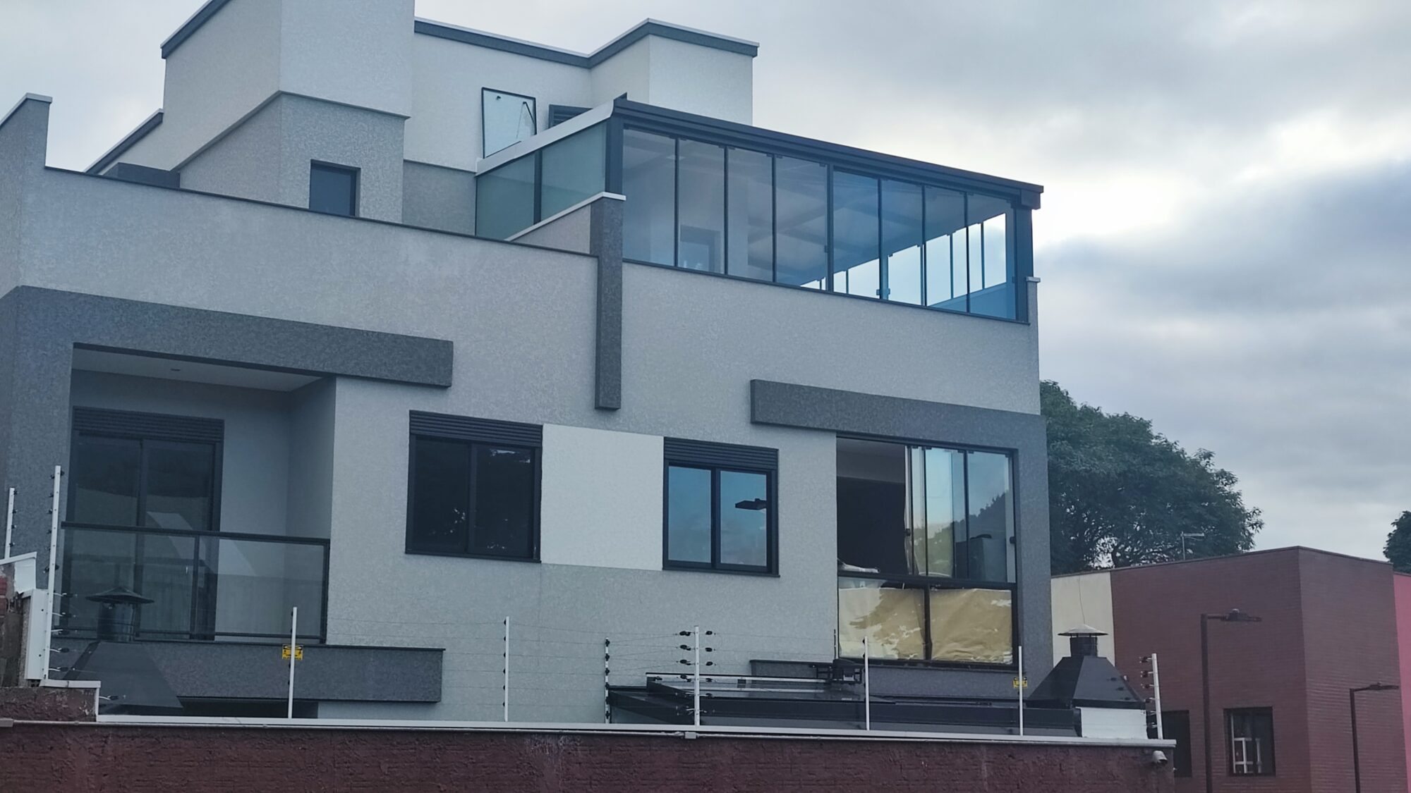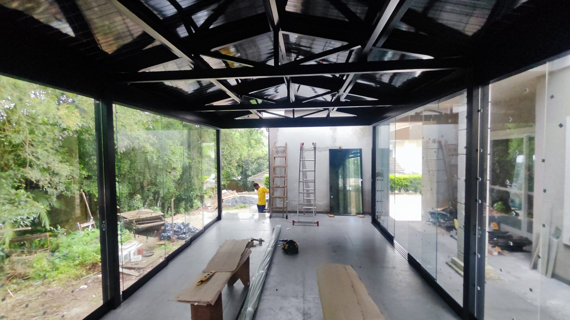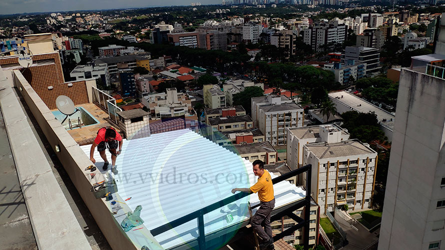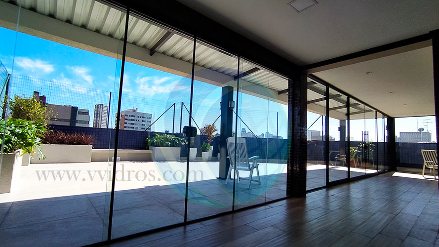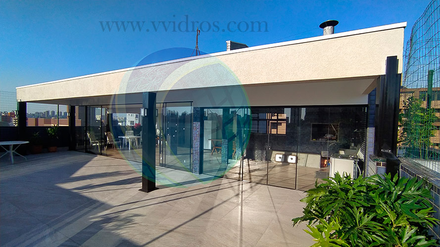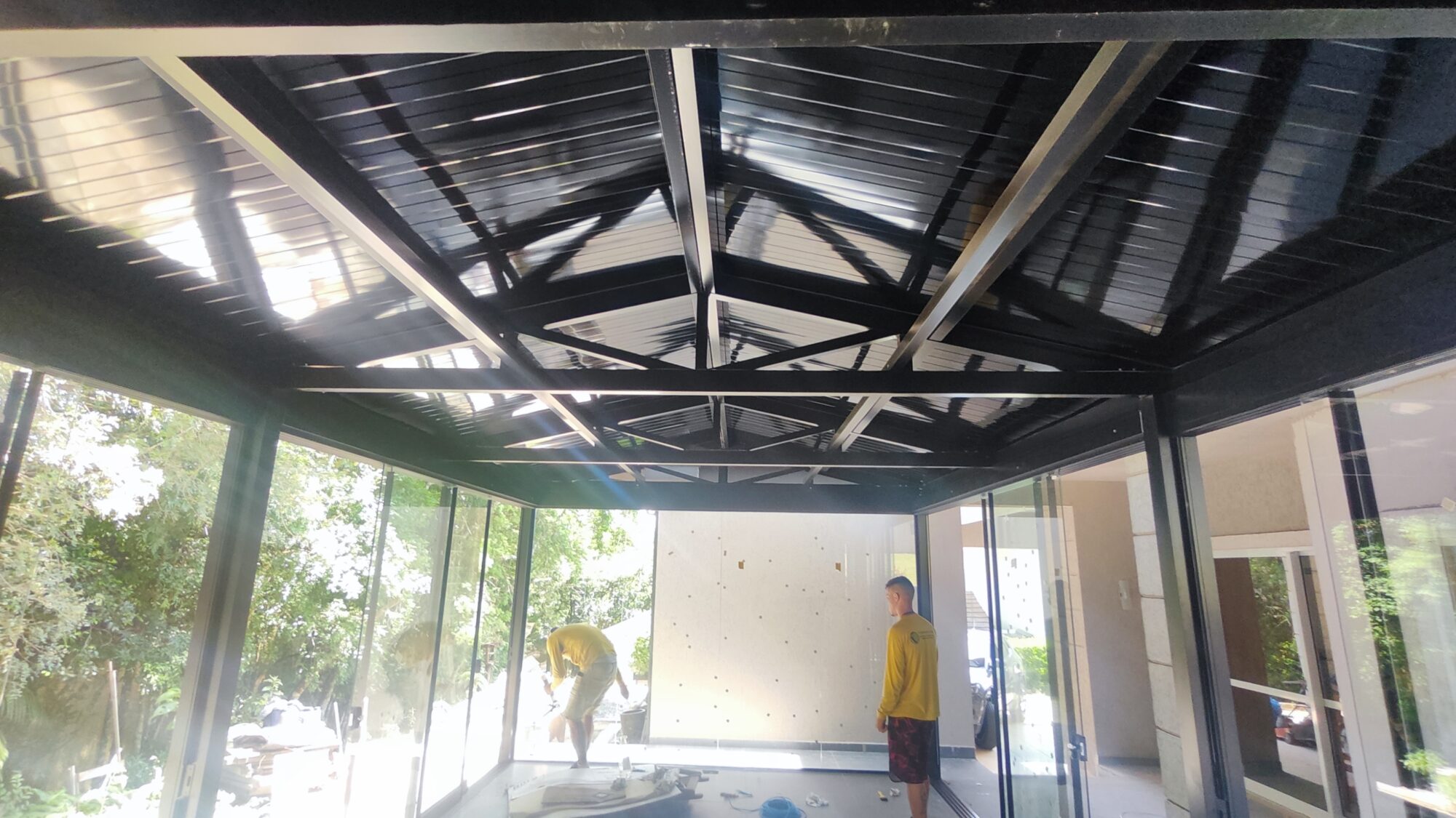 O formato da telha termoacústica é trapezoidal na sua face superior. Na face inferior pode ter o mesmo formato trapezoidal ou pode ser plano. Neste último caso recebe o nome de Telha Bandeja. A VVidros Engenharia sempre trabalha com pintura eletrostática em ambas faces para ficar com o mesmo acabemento e aparência que as estruturas compostas por perfis de alumínio.